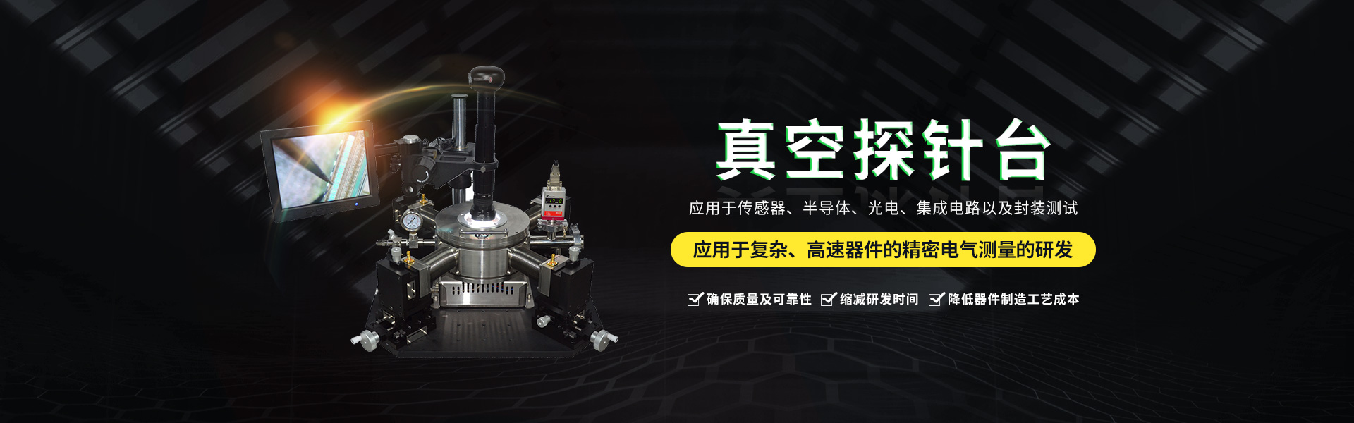 微型真空探針臺設(shè)計有進(jìn)氣口和抽真空接口其真空度用機(jī)械泵可達(dá)<5Pa分子泵可達(dá)<-3Pa。真空信號連接處使用高級真空電極信號接頭,保證氣密性及抗干擾性能。使用時將需將待檢測的器件方在加熱臺面,探針尖處由...